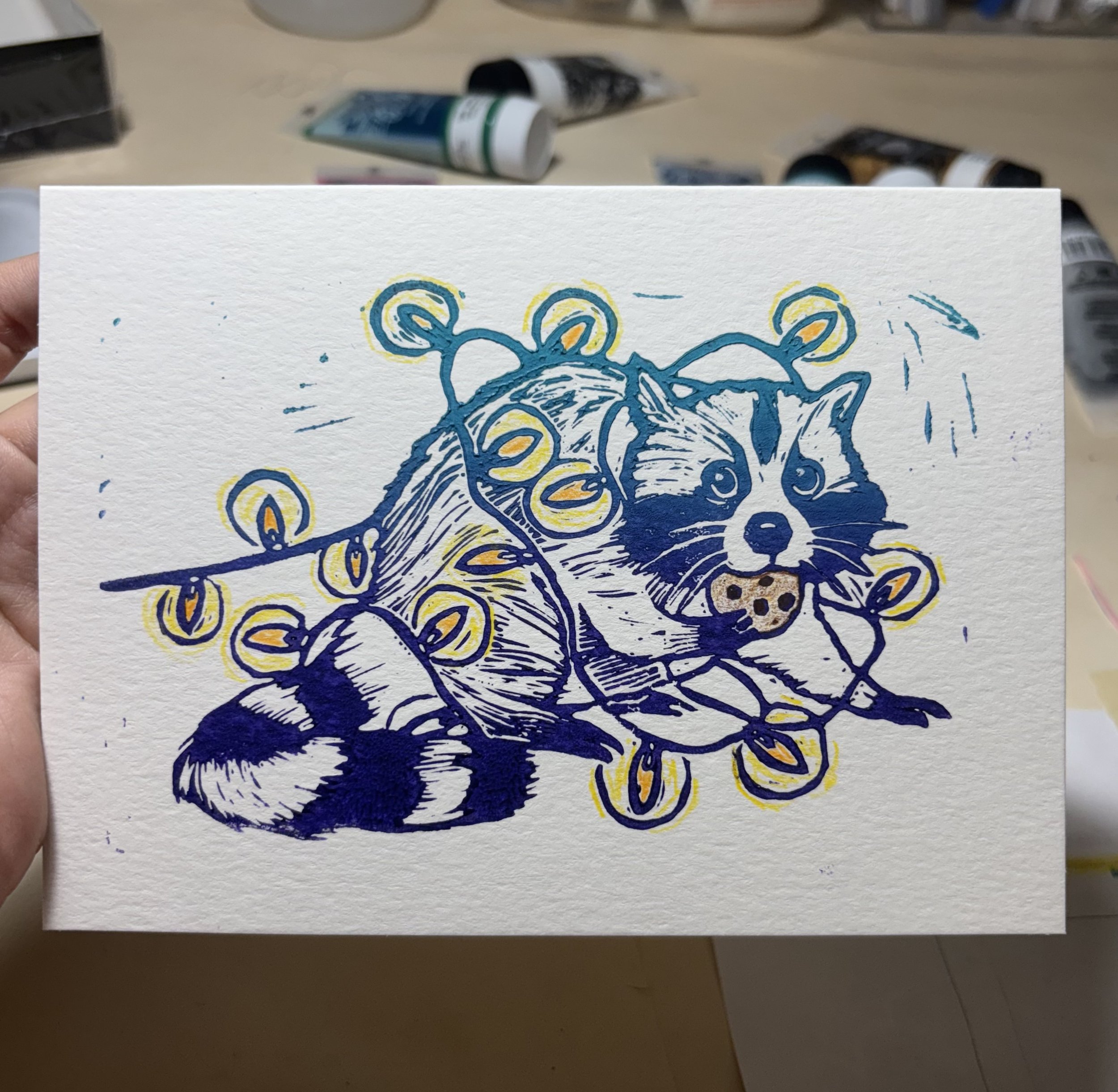 This year I had the opportunity to sell my handmade linocut cards at a holiday Christmas market in downtown Toronto named Arterial, located on Adelaide. I had time to print three designs this year: