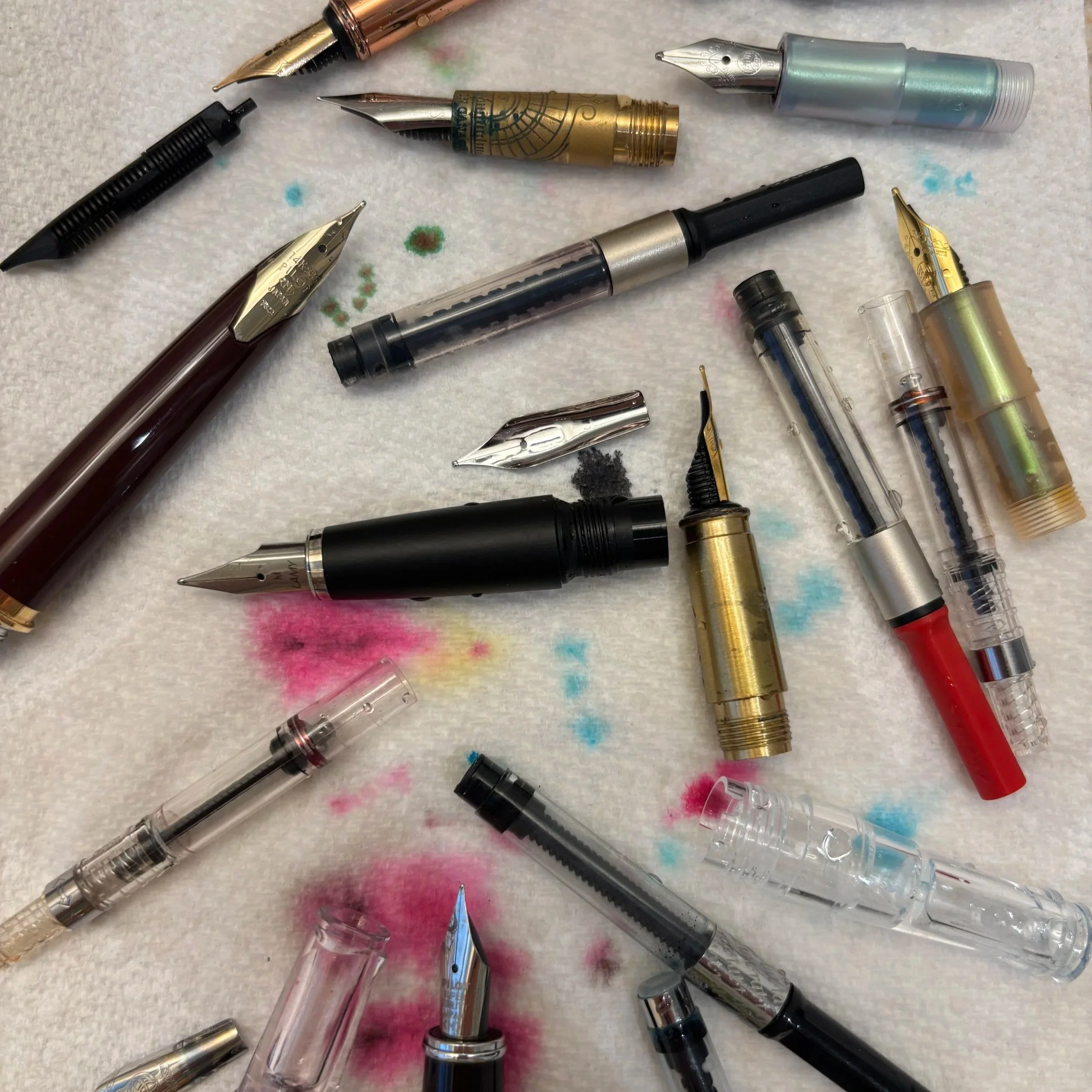 Today for me is cleaning day which takes quite a while because I have a few pens (at this point in time I have 33 total). Generally I recommend storing pens without ink inside them if you aren’t using them everyday because once the ink is dry it becomes a lot harder to clean and you might run the risk of causing damage to the pen longterm (not enough flow, erosion, etc.)
